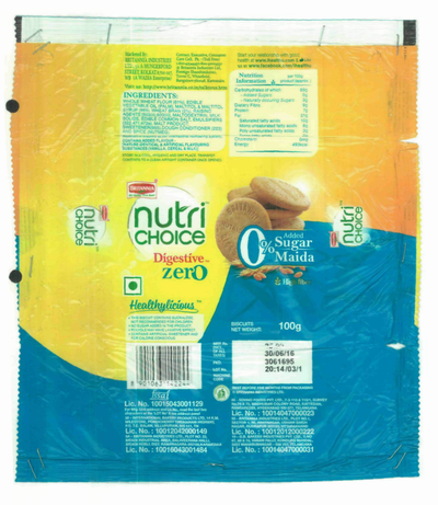 5. Britannia, evidently launched its product – “Nutri Choice Digestive Zero” biscuit – in July 2016. The packaging of Britannia product was as under:-